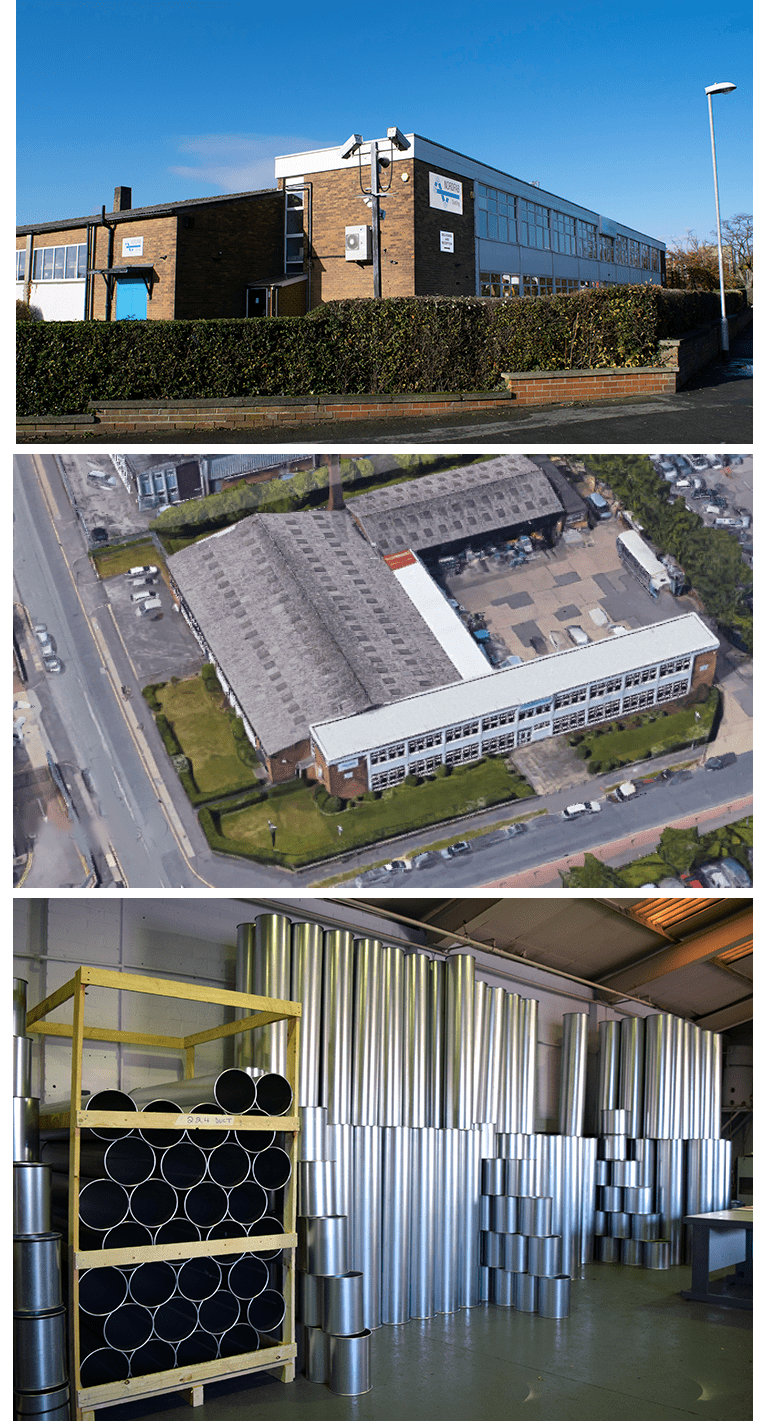 In the UK, Nordfab owns and operates a 1050m² manufacturing facility in Leeds West Yorkshire, offering an extensive range of ducting with plasma welded seams for lower leakage and maximum system performance. Our high-quality ducting is being manufactured using steel according to the British standard BS EN 10346:2015, Class A and B.