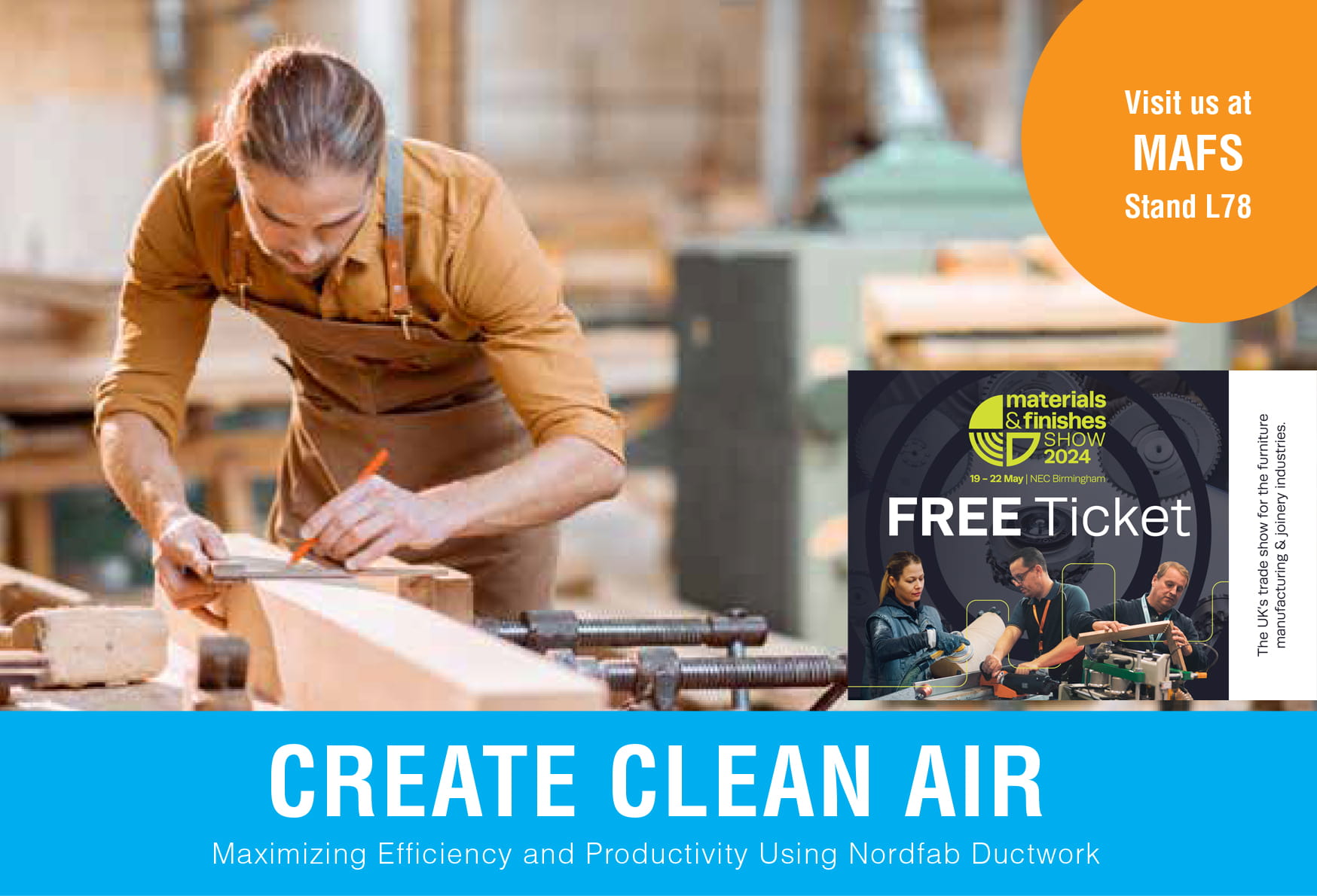 Meet us at the Materials & Finishes show in Birmingham May 19-22 and learn how you can create clean air while maximizing efficiency and productivity by using Nordfab ductwork.