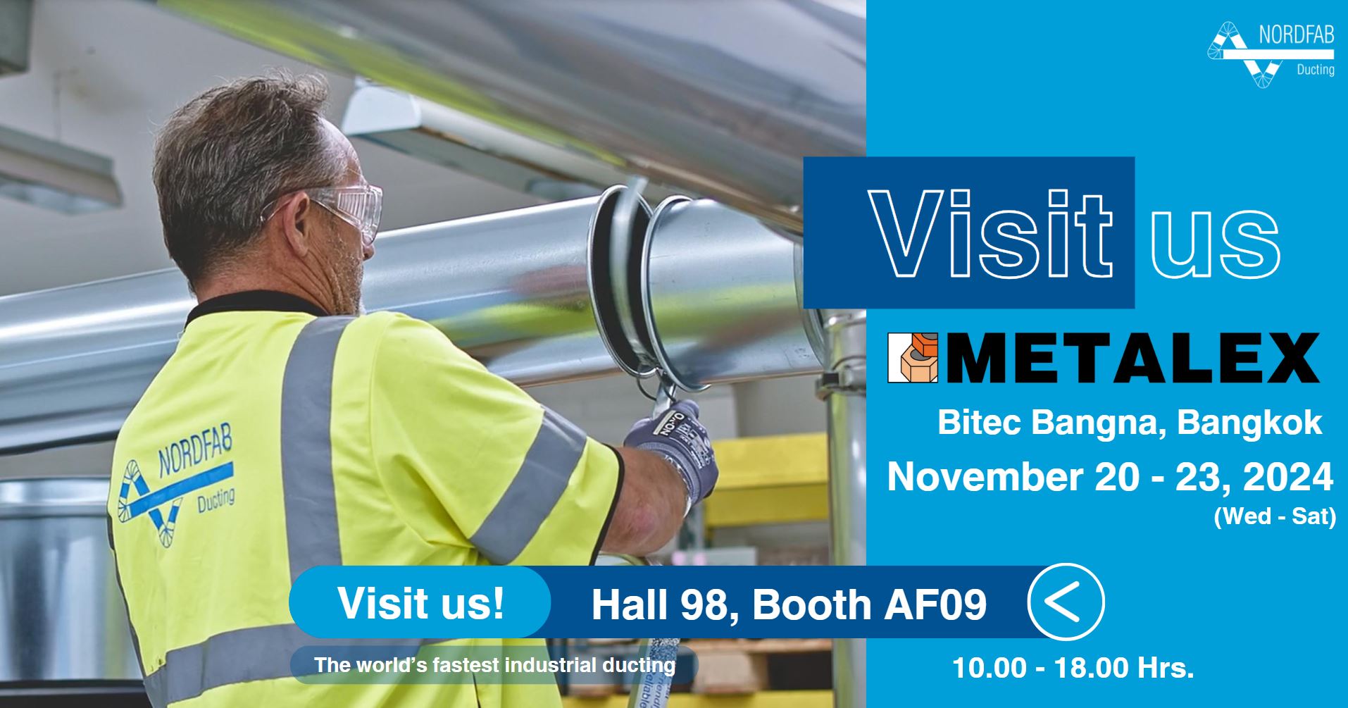 We are excited to announce our participation in Metalex 2024, Southeast Asia's premier event for the metalworking and manufacturing industry. Visit us at Booth AF09 to discover how Nordfab's Quick-Fit ducting systems can transform your workshop or facility. With our easy-to-install, durable, and highly efficient ducting solutions, you'll experience better air quality, reduced downtime, and increased productivity.